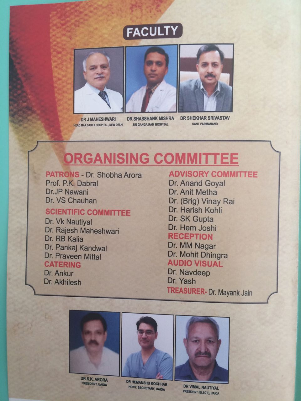 Eminent Faculties:- Dr. John Mukhopadhyay(Patna), Dr. Rajeev Rai Chaudhary(Surat), Dr. S C Goel(Varanasi), Dr. N K Agrawal(Ludhiana), Dr. Kalia(Rishikesh), Dr. Vijendra Chauhan(Jollygrant).